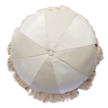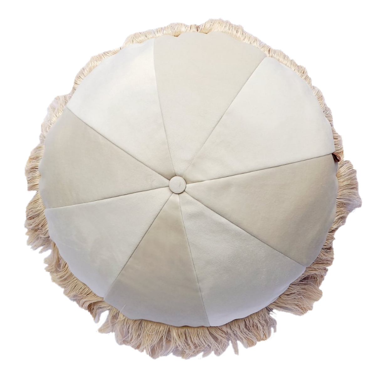 W okrągłej w szwie doszyte są kremowe frędzle.
