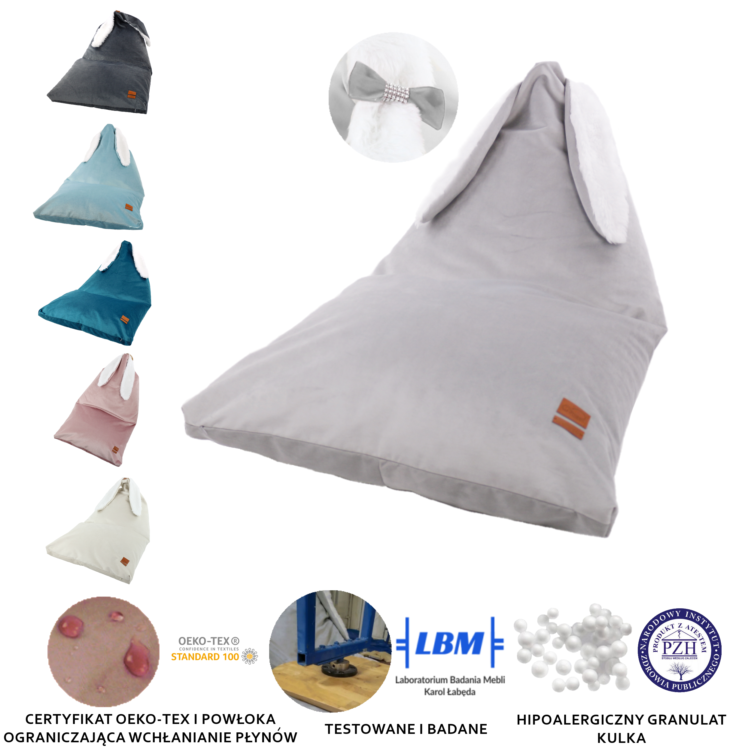 - Wypełnienie – kulka styropianowa – posiada atest PZH