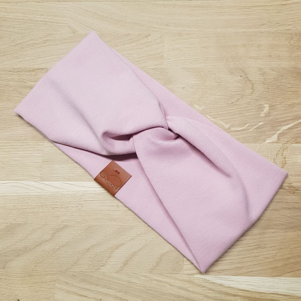 Ozdobna opaska damska lub dziecięca (do wyboru) na głowę z dzianiny w kolorze pudrowego różu. Idealna dla osób nieprzepadającymi za czapkami :). Opaska zakryje uszy, utrzyma nasze włosy "w ryzach". Można ją używać podczas wiosennych spacerów lub podczas jazdy na rowerze. Opaska posiada ozdobny twist / skręt (węzeł).