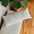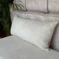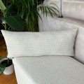 Poduszka sztruksowa posiada poszewkę zapinaną na zamek, a w środku posiada osobny wsad, który wypełniamy miękką i sprężystą kulką silikonową.