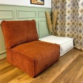 Ręcznie wykonana miękka sztruksowa pufa składająca się z zestawu poduchy podłogowej, poduchy oparciowej oraz poduszki wałka (bolsterem). Kupując kilka modułów możemy własnoręcznie stworzyć sofę, kanapę lub narożnik i w ten sposób zaaranżować miejsce do siedzenia w stylu nowoczesnym lub vintage w salonie lub w sypialni. Poduchy możemy używać także niezależnie kładąc je na podłodze i wykorzystać jako puf, stolik lub siedzisko. Poduchy, które składają się na zestaw możemy zastosować również w modnych modułowych kanapach wykonywanych z palet. Modułowy miękki sztruksowy fotel z poduszką wałkiem doda przytulności każdemu wnętrzu, w którym go wykorzystamy.