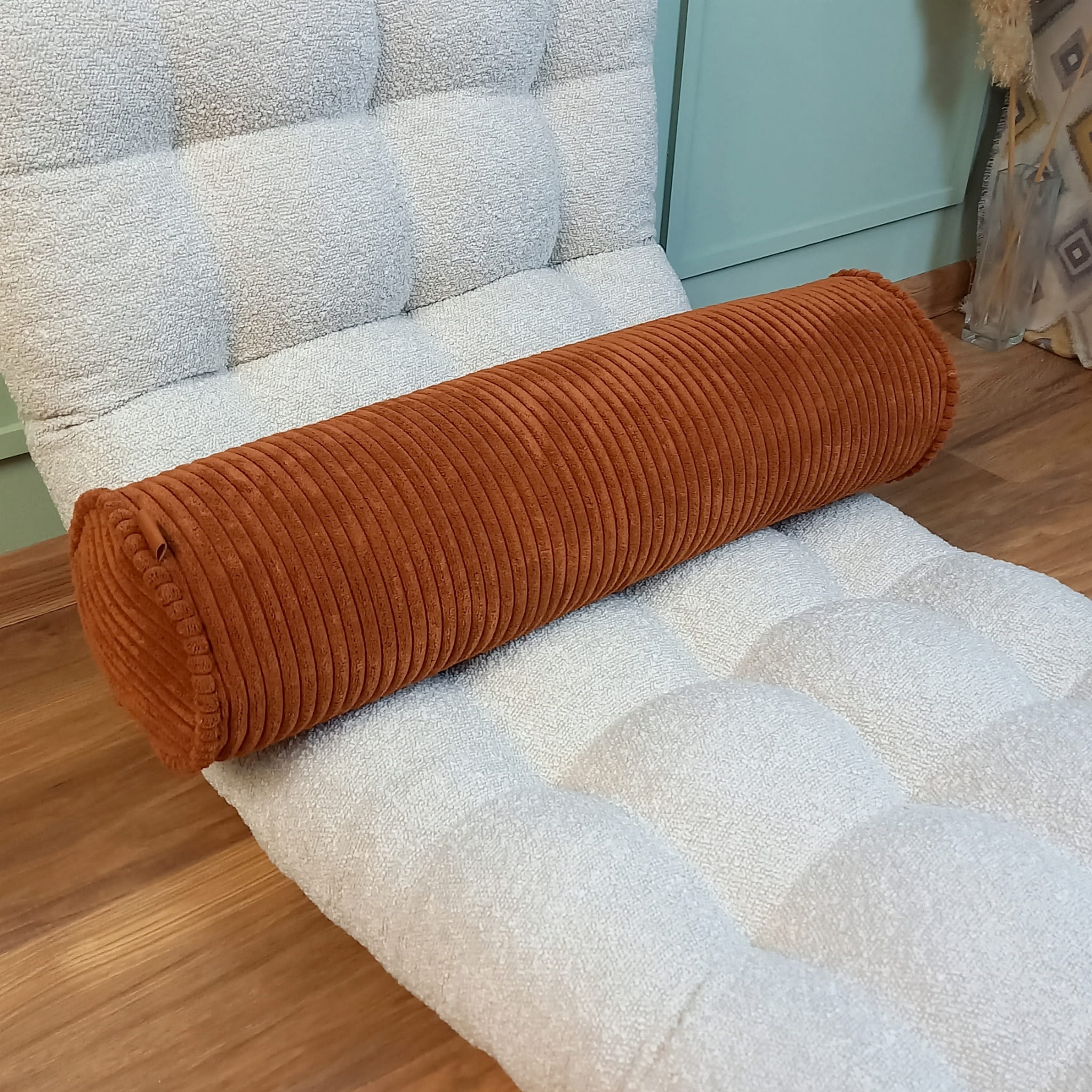 Sztruksowa pufa do siedzenia na podłodze zestaw z wałkiem